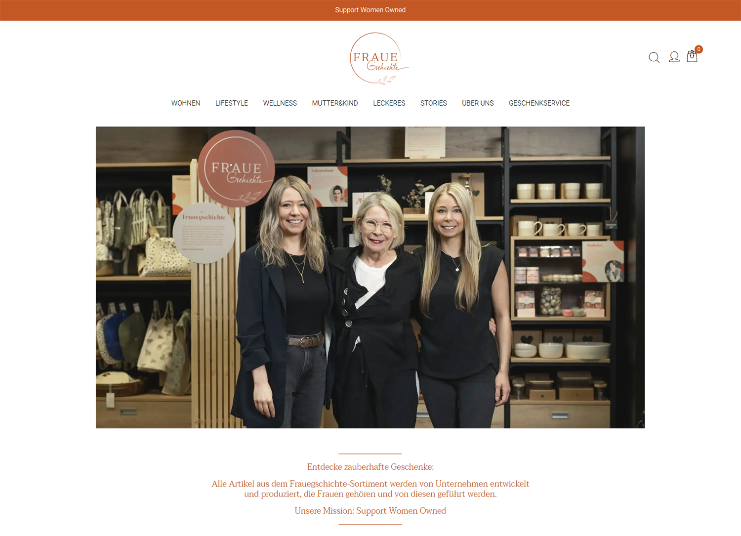 Lancierung "Frauegschichte" durch Martina Weigelt. Zauberhafte Geschenke, alle entwickelt und produziert von Unternehmen, die Frauen gehören und von ihnen geführt werden.
